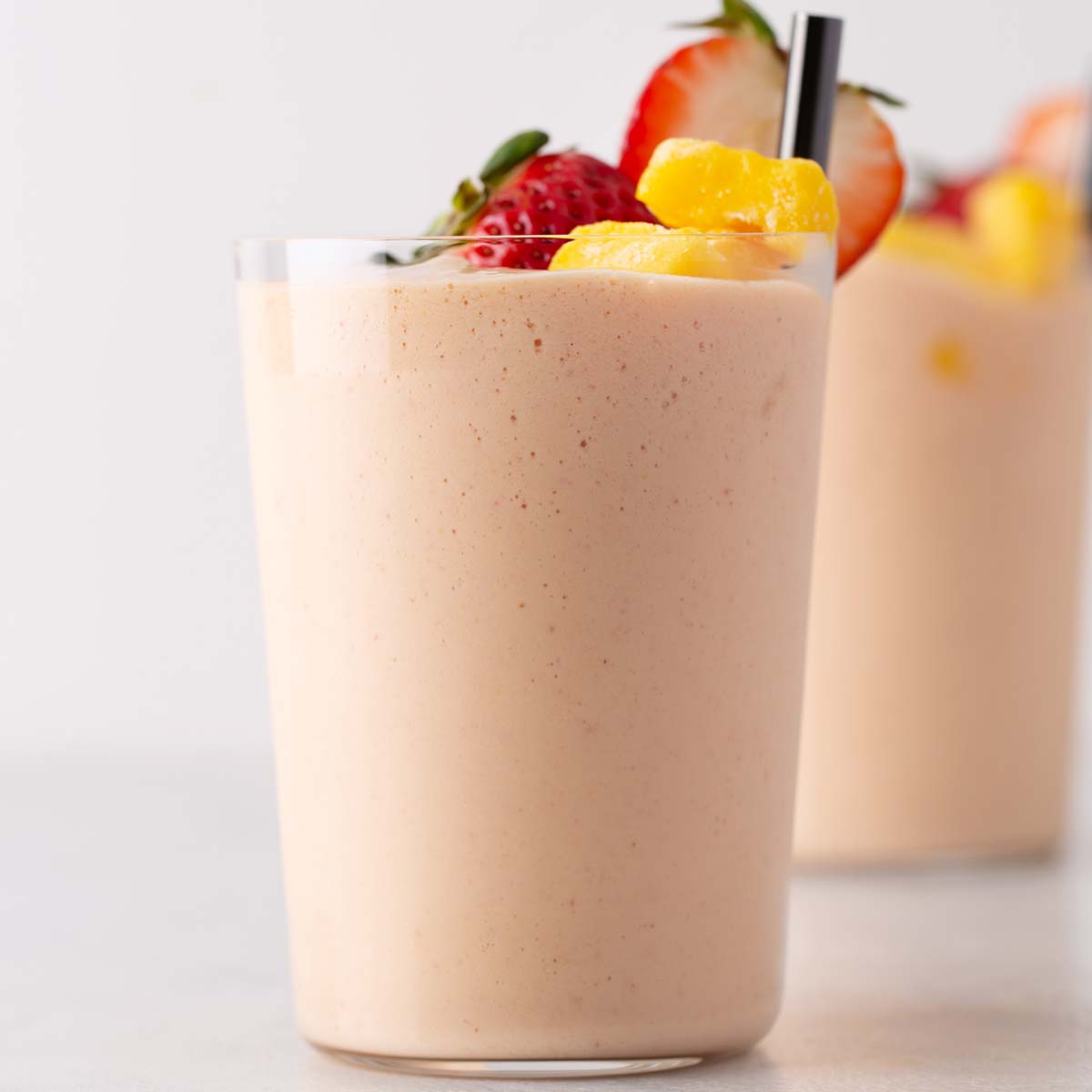 Perfectly tart and sweet, this strawberry mango yogurt smoothie will hit the spot. It's a refreshing drink that's packed with essential nutrients.This includes protein, which comes from the milk and Greek yogurt. One 16-ounce serving of this smoothie contains 12 grams of protein.Either the strawberries or mango can be in frozen form. Keep one fruit fresh, which will ensure the drink is easy to blend and smooth. You can also use regular yogurt, but Greek yogurt has more protein. Use the unflavored kind to ensure the smoothie is healthy.Ingredients: Milk, Greek yogurt, Medjool date, strawberries, frozen mango