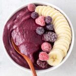 - To thin the acai bowl, add a bit of milk and blend for 10 seconds.